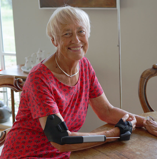The STIL Orthosis is a passive and non-invasive medical device that suppresses tremors in the forearm. By adding artificial damping to the joints in the forearm, the tremor is suppressed without restricting natural movement. Lightweight and compact, the STIL Orthosis is comfortable to wear. It offers a simple, effective way to make everyday tasks easier and to perform them with greater independence.